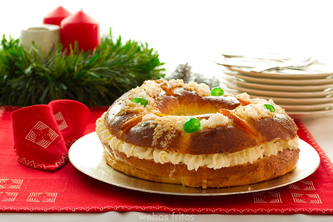 El roscón de Reyes (denominado también rosca de Reyes) en Hispanoamérica,rosco de Reyes o pastel de Rey) es un bollo elaborado con una masa dulce, adornado con rodajas de fruta escarchada o confitada de colores variados, suele rellenarse de nata montada o crema, en la actualidad también de trufa o chocolate y se introducen en su interior ¨sorpresas¨que se descubren al comer, en forma de figuritas y como no el famoso ¨HABA¨, señal que a quien le caiga debe pagarlo. Se come la festividad de los Reyes Magos el 6 de Enero.