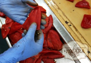 La verdad que fue todo un honor y una grata sorpresa, desde el minuto 1, donde conocimos a su fundador, estaban en plena campaña del pimiento, vimos todo el proceso, desde que llegan a la conservera, el asado, en horno con leña de Haya a una temperatura más o menos de 1000ºC. Se quema la piel sin quemar la carne, por una cinta transportadora pasa a la zona donde se pelan manualmente, hay que quitar bien la ceniza porque amarga. En el proceso se seleccionan para diferentes conservas, pimiento en tiras, enteros ó bien para rellenar.