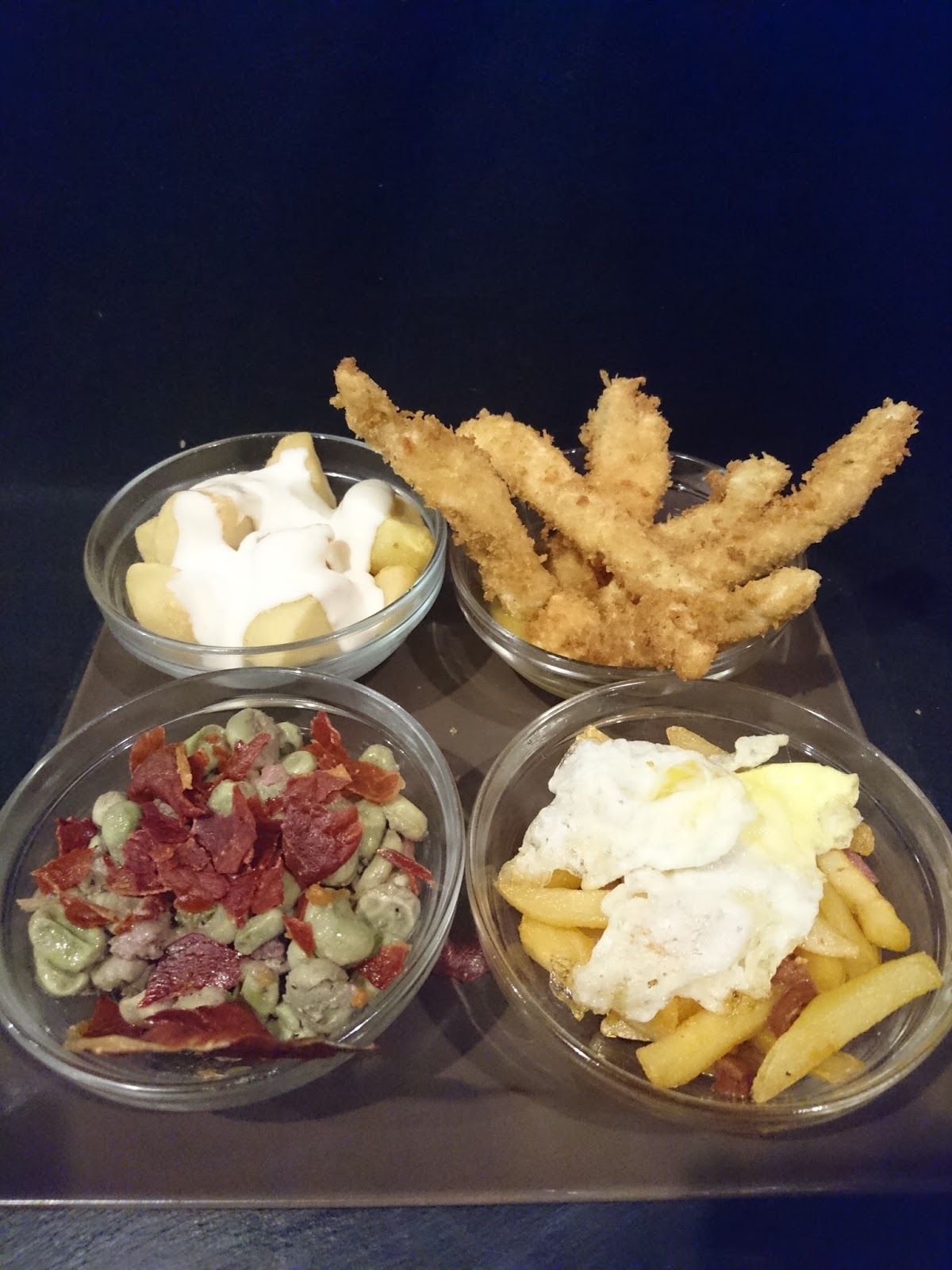 En esta ocasión aparte de los pinchos que hablaremos más tarde, podemos decir que nos preparan una serie de tapas, aparte de las tradicionales como las bravas, calamares, chopitos, etc…